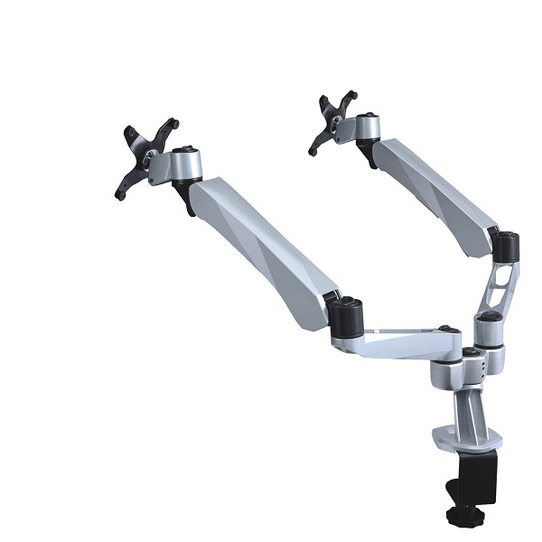 The NewStar desk mount, model FPMA-D970D is a tilt-, swivel and rotatable desk mount for 2 flat screens up to 27”. This mount is a great choice for space saving placement on desks using a desk clamp.