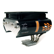 The Nexus HOC-9000 is setting new standards for CPU coolers. The revolutionary HOC-technology puts the 8mm diameter heatpipes directly on the CPU. So the heat of the processor is directly transfered onto the heatpipes. And as heatpipes have a greater heat disipation power then plain aluminim or copper the heat is transfered with great efficientcy. Together with the improved surface area of the aluminum fins, the v-shape area underneath the fan, and the airlfow focus, the performance of this cooler reaches an amazing 0.15°C/W. And all this at an ultra low fan speed from 600 RPM (PWM controlled to a max of 1500 RPM