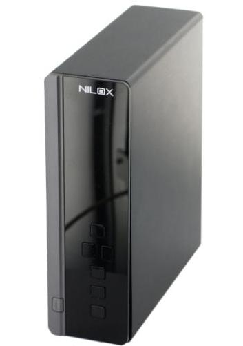 Nilox Multimedia Box M3 con DVB-T. Colour of product: Black. Maximum storage capacity: 1 TB, Hard drive size: 3.5", Hard drive interface: Serial ATA. Image formats supported: BMP, Video compression formats: Avi, Audio formats supported: MP3. Networking features: Ethernet 10/100 Base TX. Weight: 1 kg, Dimensions (WxDxH): 165 x 198 x 61 mm