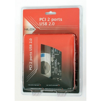 Nilox SCHEDA PCI 2 PORTE USB 2.0. Host interface: PCI. Width: 80 mm, Depth: 110 mm, Height: 30 mm. Connectivity technology: Wired