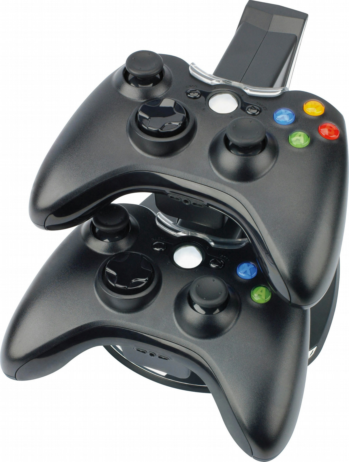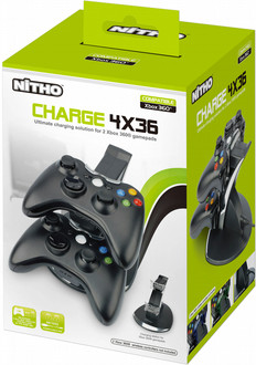 <b>- Charging station for 2 Xbox 360® gamepads</b> - Red/green lights indicate charging status. - Power cable USB to DC jack 80 cm (included).