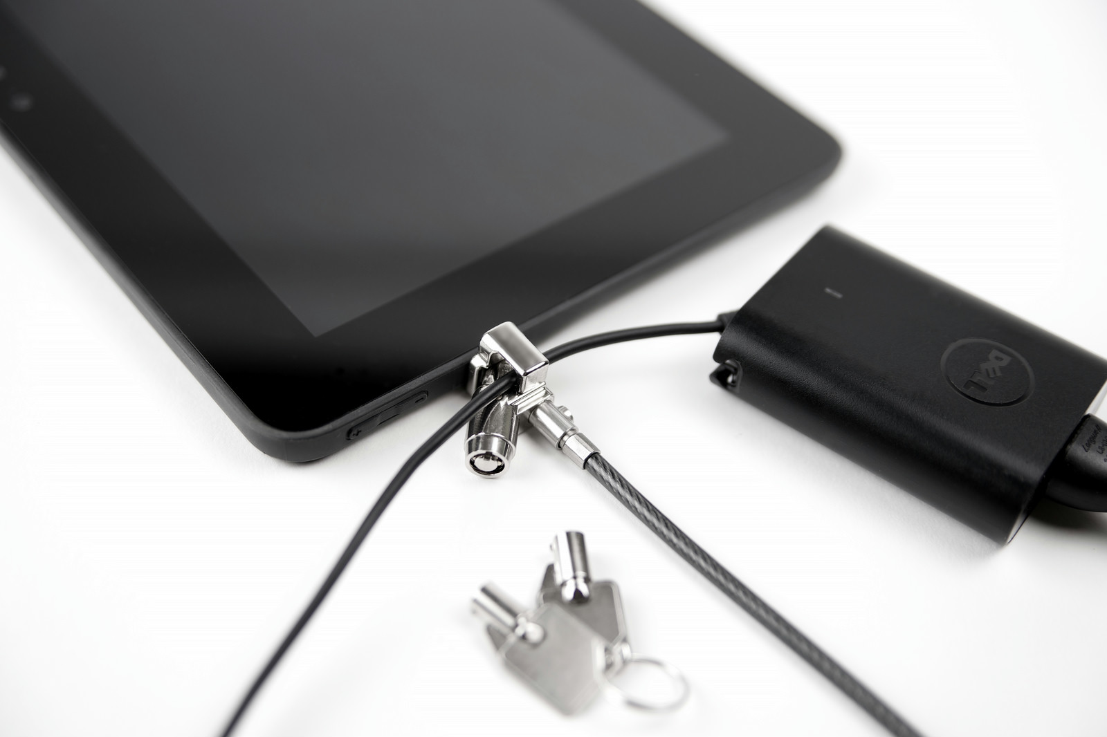 With a simple push of a button, the wedge lock secures laptops, tablets and any other device with the ultra secure patent-pending Noble Security Slot.