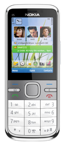 C5-00, 5.588 cm (2.2 ") TFT, 240 x 320 pixels (QVGA), 5MP, LED flash, Bluetooth 2.0, 3.5 mm AV, 89 g