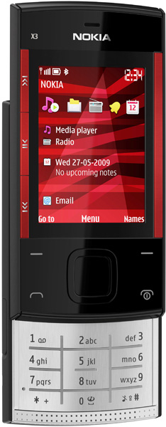 The Nokia X3 is a sleek and attractive slide-form music device that comes with stereo speakers, built-in FM radio, media player, and 3.2 megapixel camera.