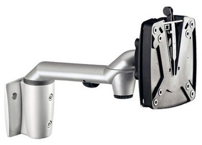 The high-grade NOVUS SlatWall-LM-Arm 0-2-1 of diecast aluminium is a design highlight among monitor arms for mounting at a SlatWall element.The arm can be pivoted 180° in the working area and has a reach up to 275 mm.The ball-joint provides superb flexibility no matter how confined space is, allowing you to select the best possible angle for viewing your monitor.The quick-release mechanism with 1-lever operation allows the monitor weighing up to 8 kg to be attached without undue effort. It is equipped with the standard, widely used flat-screen mount 75 x 75 and 100 x 100 for the mounting of all normal flat-screens.The monitor cables are guided through a cable clamp.