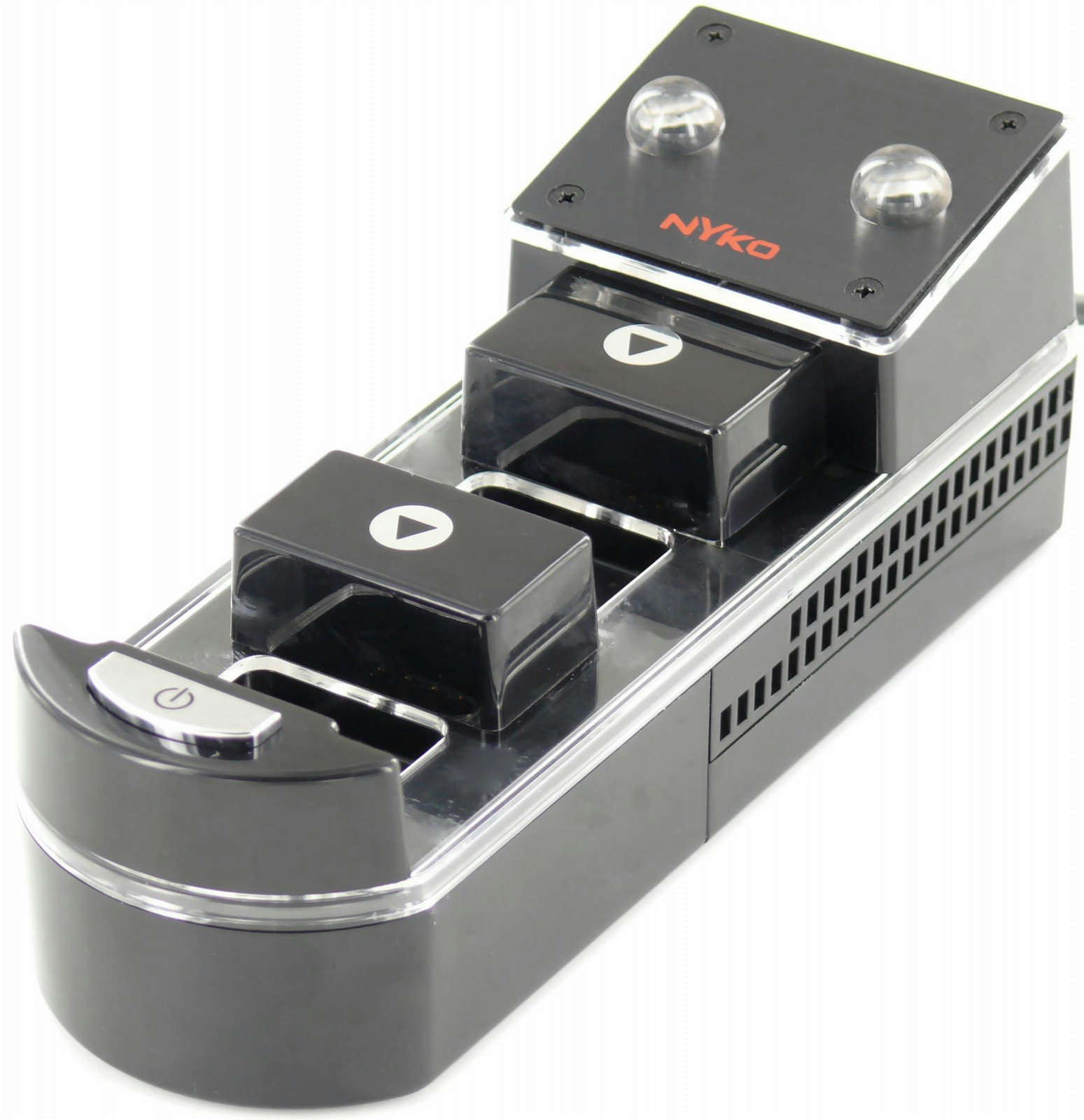 Conveniently and quickly store and charge two PlayStation 3 controllers with Nyko’s Charge Base 2. Utilizing Nyko’s unique USB Charge Adaptors, the Charge Base 2 allows for incredibly easy charging of both SIXAXIS and DualShock 3 controllers. Simply attach the small, lightweight adaptor to the Mini USB port on the controller, and then place the controller into the charging port. No additional wires necessary. The Charge Base 2 utilizes AC power from any wall outlet for a rapid recharge in just 2 hours for one or two controllers.