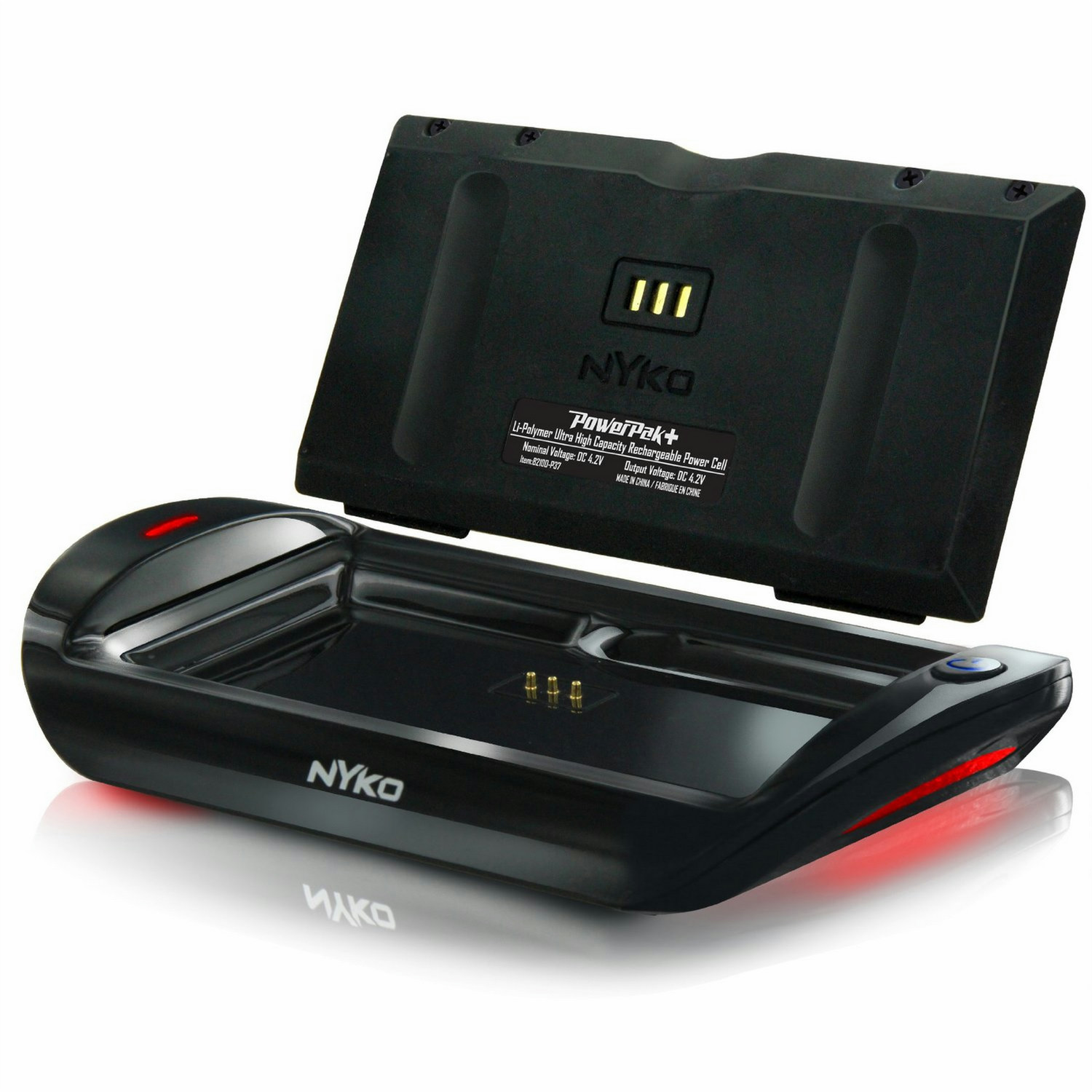 Keep your 3DS™ powered for up to twice as long with the Charge Base from Nyko. The Charge Base comes with the Nyko Power Pak+, a double capacity Lithium Ion Polymer battery, designed specifically for the 3DS and a custom charging dock that allows for easy charging and storage of the handheld. Once installed onto the back of the 3DS system, the Power Pak+ battery provides double the capacity of the stock battery while also giving the system a textured grip and de-bossed finger rests, perfect for extended game play sessions. The included charging dock is powered by the stock AC Adaptor that comes with the 3DS and allows for convenient storage and charging of the system. No excess cords, plugs or adaptors, just drop and charge. The Charge Base is everything you need to store, charge and keep your system powered for twice as long.