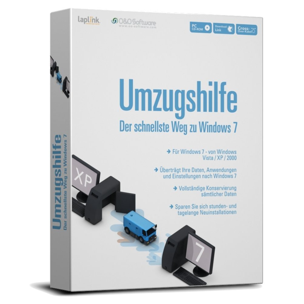 O&O Software Umzugshilfe für Windows 7. Platform: PC. Minimum hard disk space: 100 MB, Minimum RAM: 512 MB, Compatible operating systems: Windows 2000 Pro, Windows XP, Windows Vista, Windows 7. Language version: German