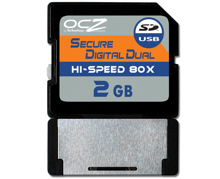 unique SD Dual cards introduce the ultimate convenience of an SD card and USB adaptor in one unit. Unlike conventional SD memory, OCZ SD Dual converts into a high-speed USB 2.0 connector eliminating the need for an independent card reader to transfer or view pictures or data on any PC.