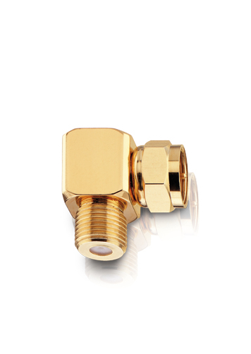 90 ° offset antenna adapter for cables assembled with F-plugs. Perfect solution to lead an antenna cable angled. 24 ct. gold plated.
