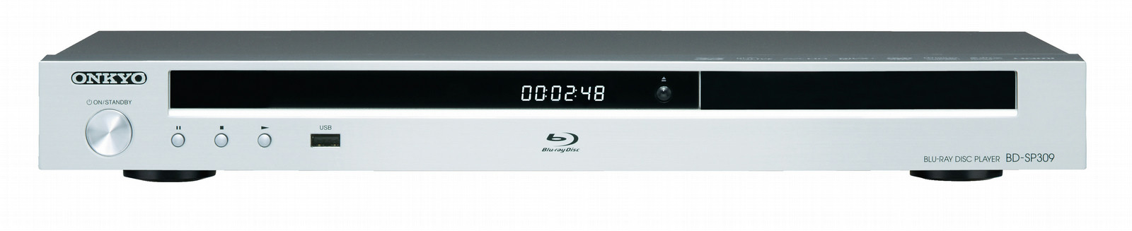 The sleek, minimalist lines of the BD-SP309 pack enough playback prowess to enliven any entertainment space. Partnered with one of Onkyo’s high-value home cinema systems, the BD-SP309 brings you the phenomenal detail and realism of Blu-ray—including Blu-ray Discs encoded in stunning 3D. But that’s not the only source it handles. Along with DVD and CD playback, the BD-SP309 features an Ethernet port to support home networking. Videos, music, and photos stored on an in-house media server can now be incorporated into your main entertainment system more seamlessly than ever. The Ethernet port also opens up the interactive, content-rich world of BD-Live. Connectivity on the BD-SP309 is rounded out by two USB ports that let you play media from a variety of storage devices. Content encoded in HD formats such as AVCHD and DivX Plus™ HD is handled with ease, and all standard-definition video can be upscaled via HDMI® to widescreen 1080p. As well as handling 3D video, the HDMI output also supports lossless audio from Dolby and DTS. So if it’s a versatile and affordable playback solution you seek, look no further than the BD-SP309.