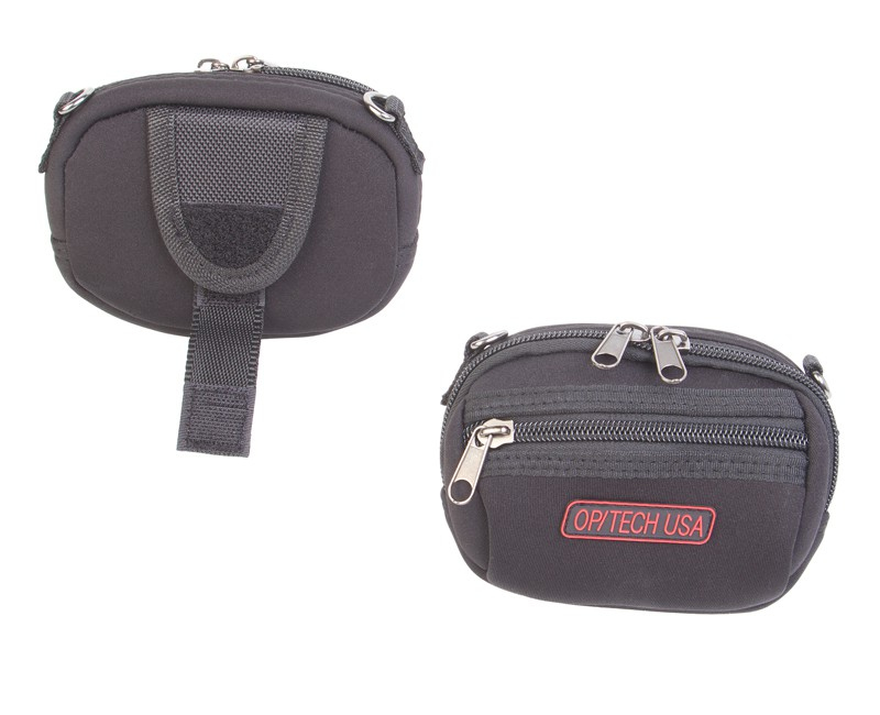 Soft Pouch - Zippeez are a unique line of zippered pouches designed to carry your gear horizontally on your belt. The main compartment offers a full-width zipper with gusseted pocket for maximum accessibility. It also has a neoprene inner panel between the pouch and the front pocket. This allows the main compartment to stretch in size to fit slightly larger cameras. The front zippered pocket is a great place to store extra film, media cards, batteries and more. There is no better digital accessory for your small camera and electronics needs. The belt clip secures snugly with a hook and loop overlapping lock to ensure a strong hold.