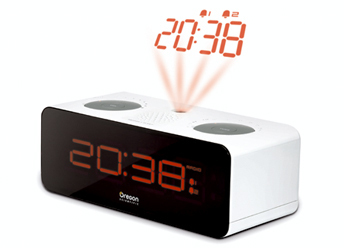 Radio Projection Alarm Clock, White With the projection of time and alarm means you will never have fumble in the dark or switch the light on again. Also included an AM/FM Radio with Rotary keys for volume and frequency tuning, enabling you to wake up by either radio or deep alarm. The dual alarm function also you to set two alarms on the same clock.