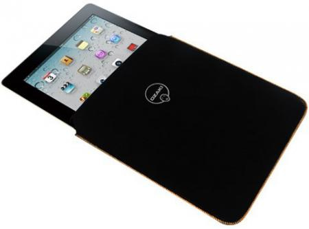 Soft pouch velvet sleeve design with stitching along opening, iPad 2/3/4, black/orange