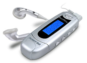 Packard Bell FunKey 512 MB FM. Colour of product: Silver. Player media type: Flash-media, Total storage capacity: 0.512 GB. Display: LCD. Audio formats supported: MP3,WMA. Signal-to-Noise Ratio (SNR): 90 dB, Total Harmonic Distortion (THD): 0.01%, Frequency range: 20 - 20000 Hz
