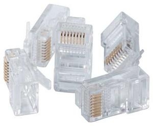 - 8-conductor modular plugs for flat, oval, or round cable.
