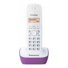 Panasonic KX-TG1611. Type: DECT telephone. Mounting type: Wall, Colour of product: Purple, White. Phonebook capacity: 50 entries. Display: LCD, Display number of lines: 1 lines, Backlight colour: Amber. Battery type: AAA, Talk time: 15 h, Standby time: 170 h