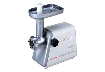 MK-G1300P - Made in Japan; - 1300W; - Circuit Breaker; - Large Metal Hopper; - 3 Cutting Plates; - Stainless Steel Blade.