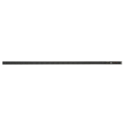 Vertical power strip with a 15 A, 120V, 20 NEMA 5-15R in-line receptacles, one 15 A thermal breaker, red LED surge suppression indicator, and 10' power cord with NEMA 5-15P plug. UL and c-UL Listed.