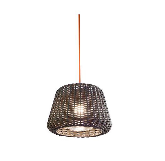 Outdoor lamp in the suspension, table, floor and peg versions. Lampshade in hand-woven synthetic rattan and stem in aluminum/brass (table, floor and peg versions). Polycarbonate cap with E27 lamp socket. Lampshade available in striated white or brown color. Stem finished with polyacrylic paint in white or brown. Diffuser with bayonet fitting designed for an easy removal for the eventual withdrawal during the winter. Suspended version supplied with 1 power cable in orange (version 90 also equipped with 1 suspension steel cable). Available accessories for wall fixing. Ideal for outdoor living areas or garden lighting.