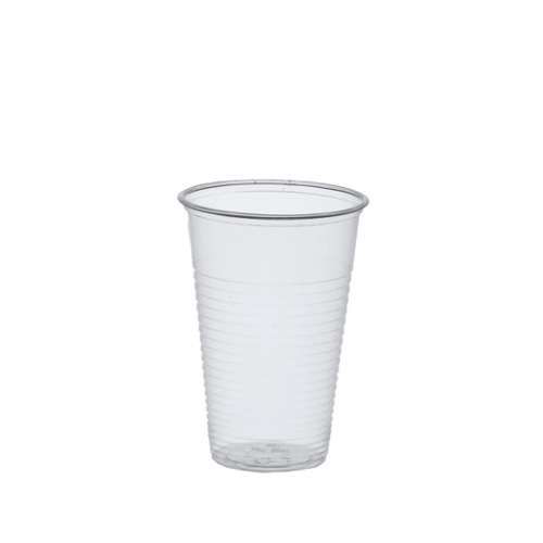 Clear plastic cups made of PS (polystyrene)