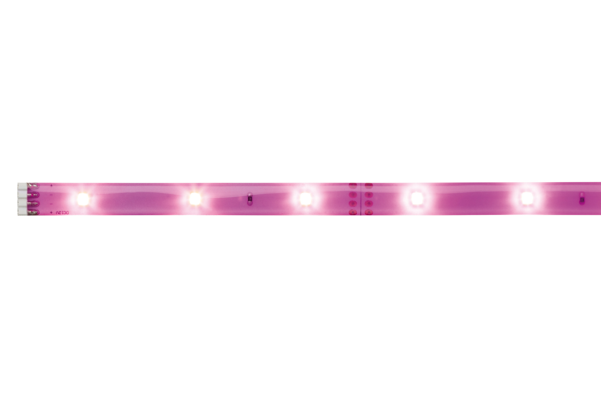 LED strip for decorative light effects with purple-coloured coating incl. fluorescent after-glow effect. The after-glow is activated both when switched on and also by daylight. Easy installation thanks to adhesive backing and plug-in system. Optional splash protection via accessories. Please select the required power supply based on the total strip length or an extendable basic set.