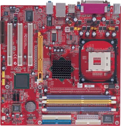 M981G (V5.0A), socket 478, Intel865GV/ICH5, Micro-ATX, DDR, AGPro/PCI, 3x184-pin DIMM, 2xUltraDMA, Fast Ethernet