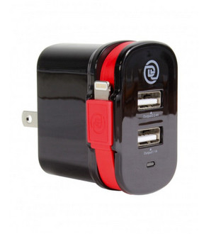 Enjoy super-fast charging of up to 3 of your mobile devices using any wall outlets. Super-fast charging of your mobile devices using any wall outlet. Includes two USB outputs and a built-in 15" cable with Apple Lighting connector for direct charging of iPods, iPhones and, iPads.