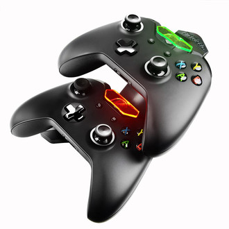 Easily charge two wireless Xbox One controllers simultaneously using the Energizer Power & Play Charging System. Conveniently store and secure your Xbox One controllers in the charging system's dual cradles and never waste valuable gaming time again. The easy-to-read glowing LED lights clearly indicate charge status, red when charging and green when fully charged.