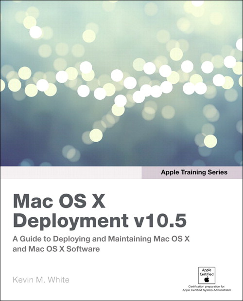 Apple Training Series: Mac OS X v10.5 Deployment v10.5 uses a combination of task-based instruction and strong visuals to teach intermediate and advanced users how to deploy a wide range of files and systems to multiple users in a large organization. Author Kevin White takes readers through the deployment of software, ranging from individual files, to complete systems, to multiple users, discussing the range of methodologies used. Intermediate users will learn how to use Apple deployment tools, including Disk Utility, PackageMaker, Apple Software Restore, and NetBoot. Advanced users will learn how to customize deployment solutions with scripts to provide post-installation configuration. Throughout the book, users learn how to tie all of the solutions together to create fully integrated software and hardware deployment plans.