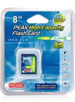 PEAK SD 2.0 flash card is the latest version of SD card with new specifications and features from the SD 1.1 card. It is designed for the high capacity of information storage in such devices as digital cameras, mobile phone, MP3 player, Personal Digital Assistant (PDA), and Notebook / PC etc.