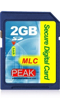 PEAK Secure Digital (SD) Card is a postage stamp-size, removable flash storage device, which is designed specifically for the newest portable Internet music players, digital cameras, mobile phones, handheld PCs, digital camcorders, smart phones, car navigation systems, electronic book, and other latest digital products.