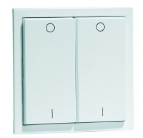 Easyclick wall transmitter AURA, 4 channels without combination frame, series bridged rocker switch with neutral mid-position and label I/0, H = 15 mm