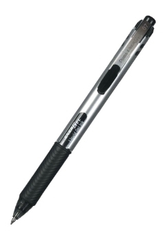 -Stylish metallic-look barrel. -Soft rubber finger print grip. -Metal pocket clip. -Push button retractable nib. -0.7mm tip gives a 0.35mm line width. -Takes LRN7 refill.