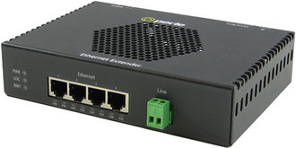 eXP-4S1110PE-TB-XT - Gigabit Ethernet Industrial Temperature PoE+ Ethernet Extender - Provides power over Ethernet as a PSE. 4 port 10/100/1000Base-T (RJ-45) [100 m/328 ft.]. Terminal Block Interlink ( VDSL2 ) connector. Power adapter not included.