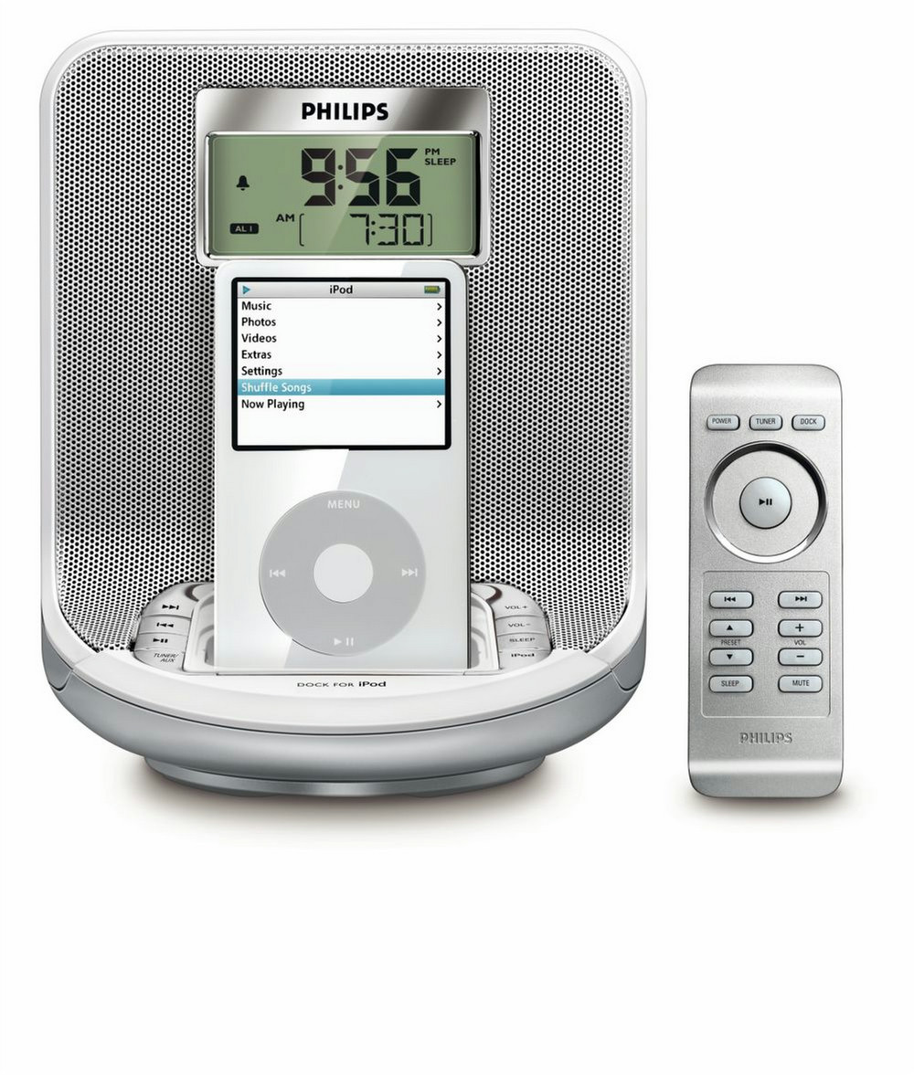 Free your portable music at home! Dock your iPod or GoGear player into the compact AJ300D Docking Entertainment System with powerful bass supported by 12W RMS power. Enjoy great sounds and choose to kick-start each day with music.