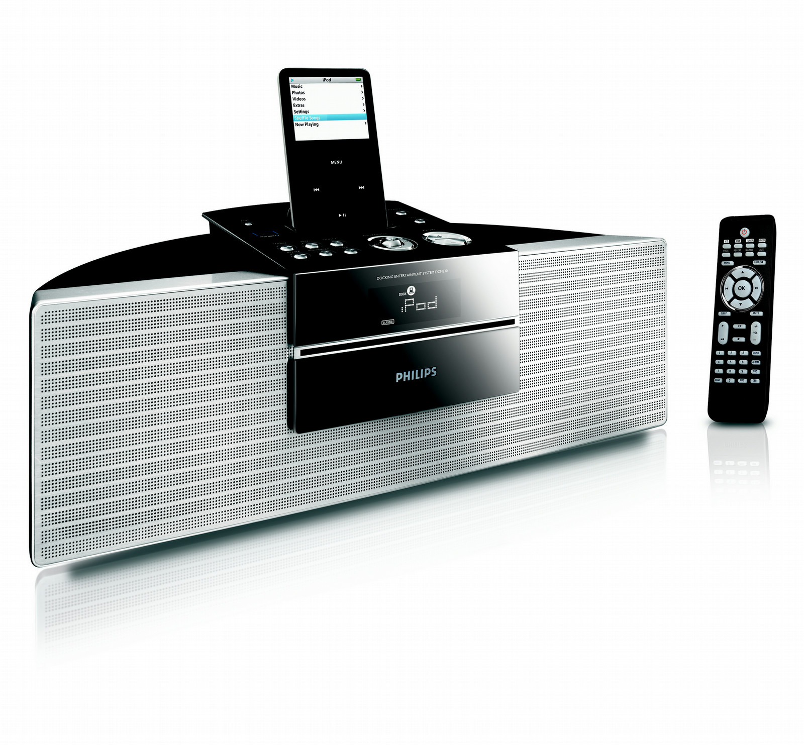 Free your iPod music and enjoy it in superb sound on the Philips DCM230. Stylishly designed with a cool metallic finish, the sleek system features smart functions and boasts total 30W RMS power for truly dynamic sound.