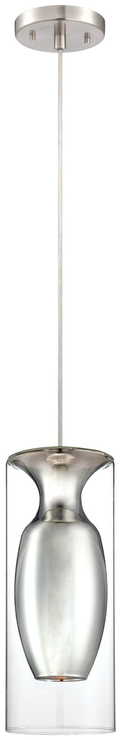 One-light pendant in Satin Nickel finish with mercury inner glass fused to clear surround.