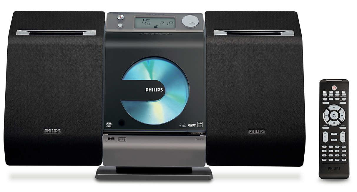 Enjoy superb clarity with built-in DAB tuner with this Micro system. With MP3-CD playback, have the freedom to personalize your sound settings to your tastes. Coupled with wall mounting flexibility, this system will leave you awed.