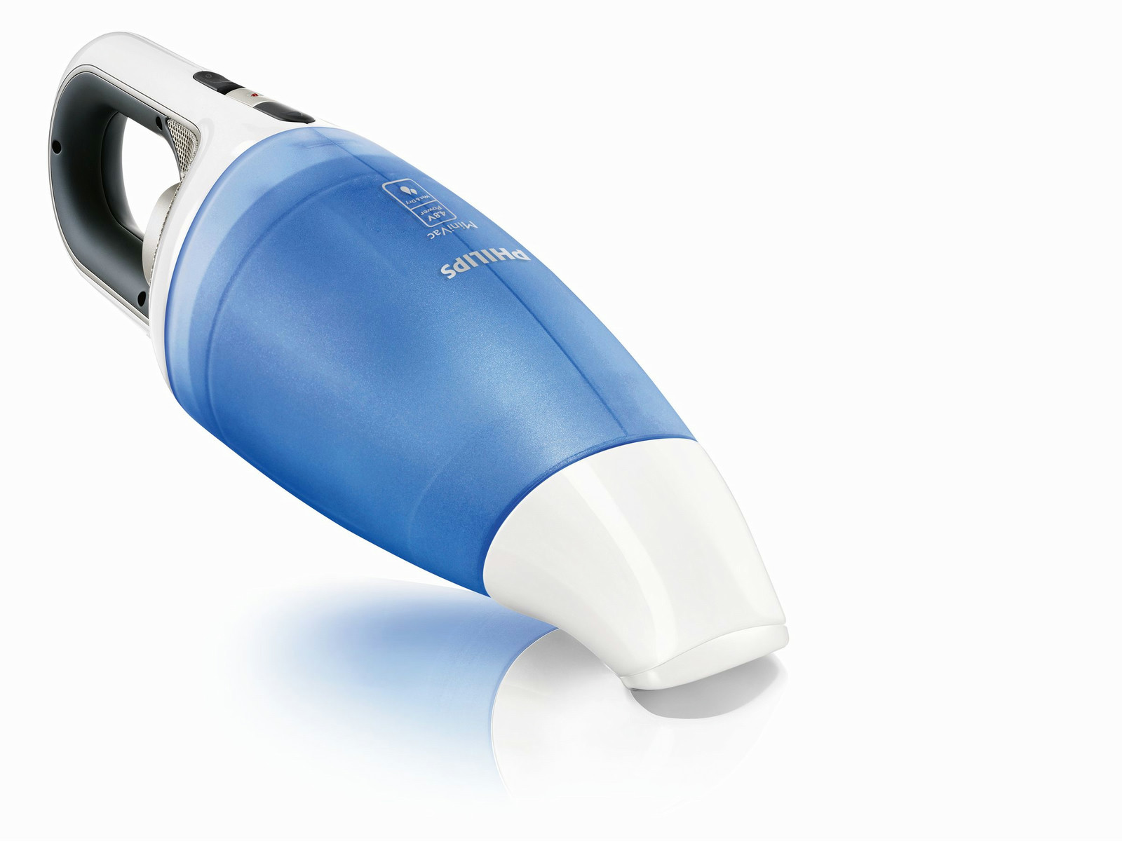 The Philips Mini Vac has a looped handle that ensures optimum grip. You can grab the Mini Vac in any way you like. The soft rubber coating feels gentle and gives the firm grip you need.
