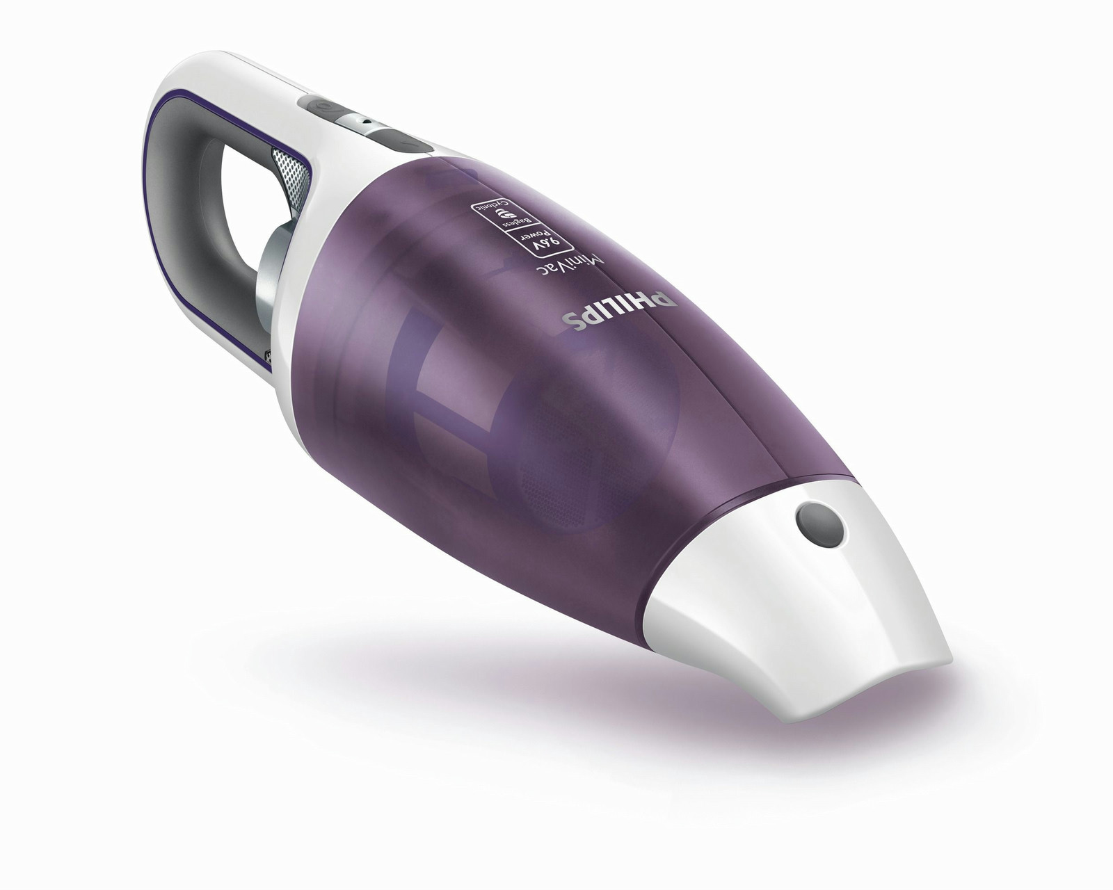 Enjoy a better cleaning result with the powerful Philips MiniVac 9.6 V vacuum cleaner. The bagless cyclonic airflow and 2-stage filtration system guarantee lasting performance, while the aerodynamic nozzle ensures a superior dust pick-up.