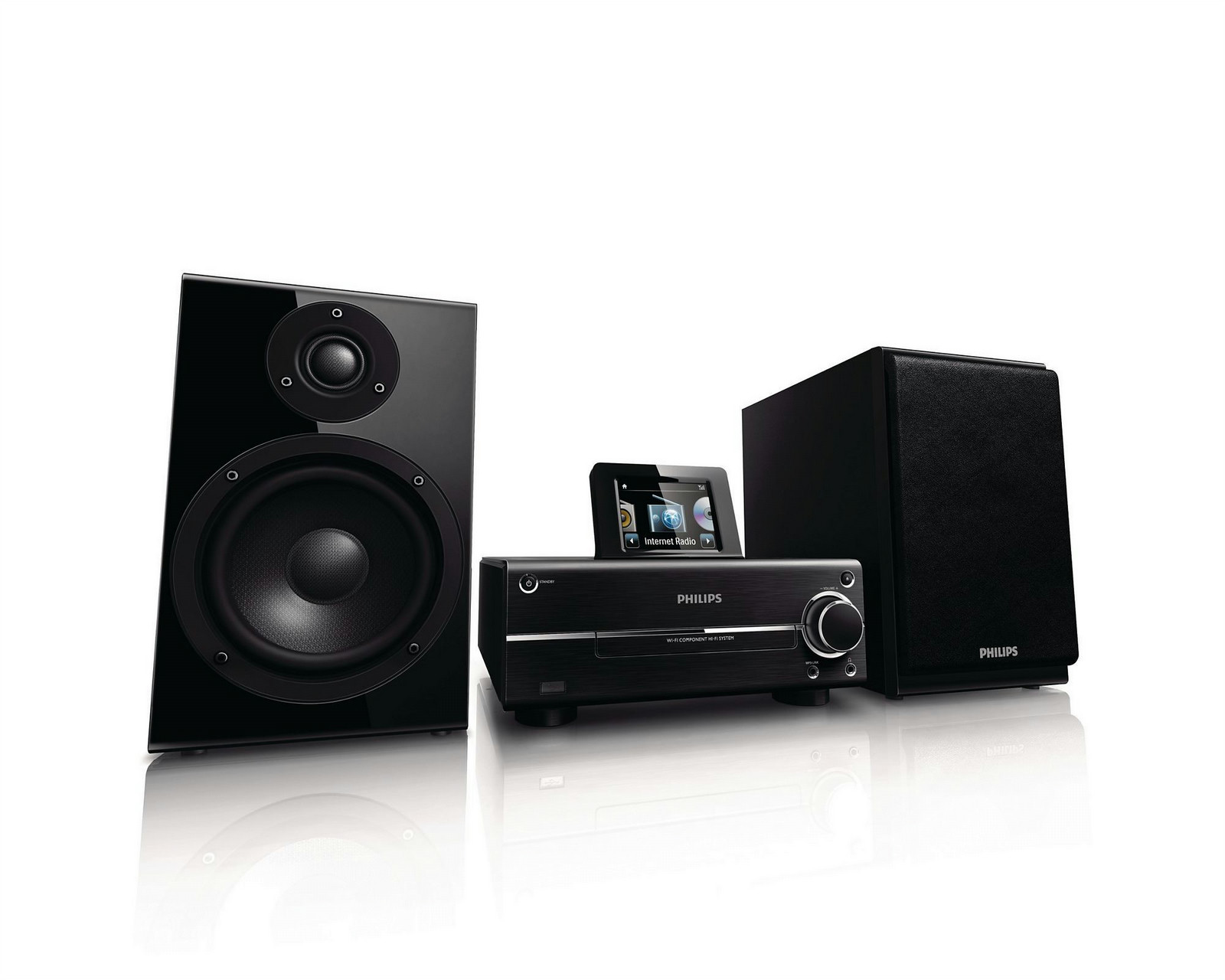 The Philips Streamium Wi-Fi component Hi-Fi system lets you stream music from your PC/MAC or play CDs, MP3s or FM and Internet radio. Plus, enjoy easy navigation on its intuitive touch screen with colour display.