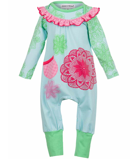 Lovely soft suit with many details. Snap buttons a crotch and dobble function rib at feet.