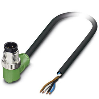 Sensor/Actuator cable, 4-position, PVC, black RAL 9005, Plug angled M12, A - standard, on free cable end, Cable length: 2 m