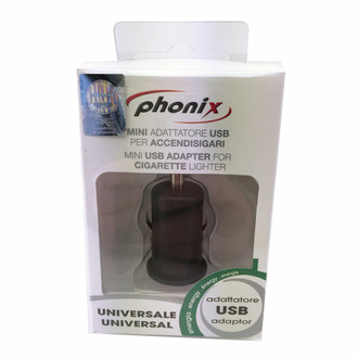 Transformer with with car lighter plug-in 12 – 24 Volt DC and micro USB socket.