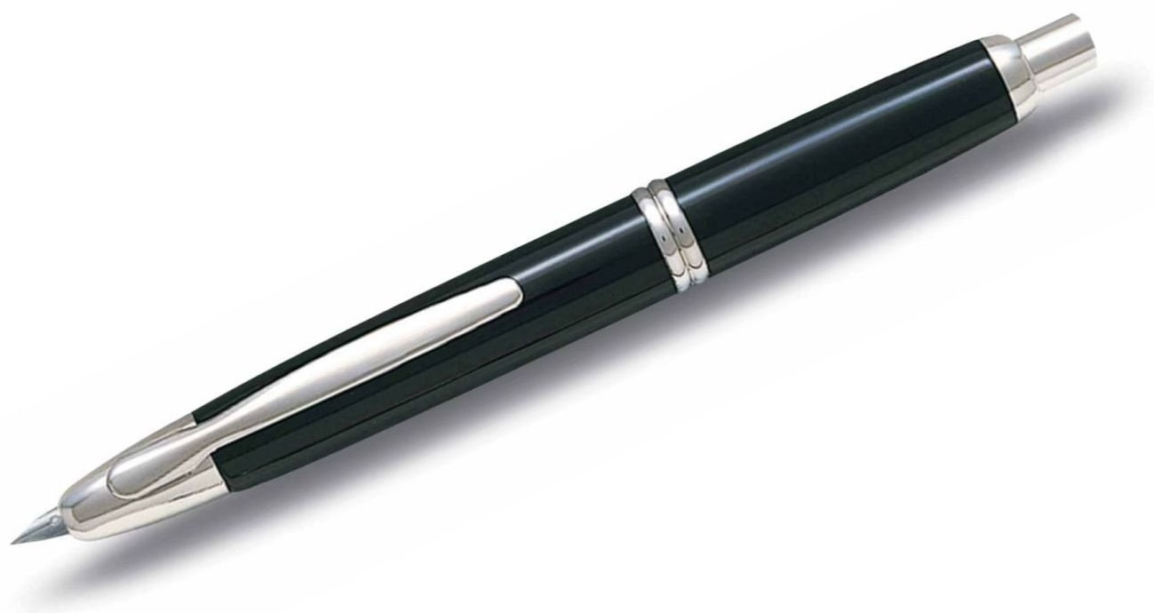 <b>Pilot Capless Fountain Pen</b> The Pilot Capless Fountain Pen houses a mechanism of rare precision which allows the nib to retract into the barrel when not in use.