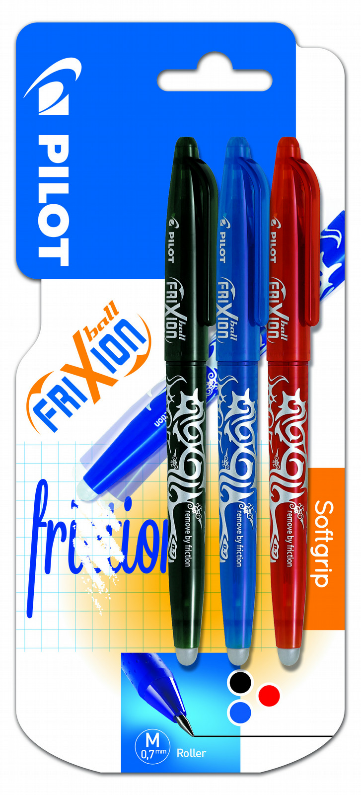 Pilot FriXion Ball. Type: Retractable gel pen, Writing colour: Black, Blue, Red, Colour of product: Black, Blue, Red. Package type: Blister