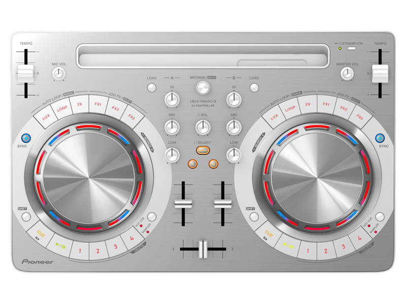 The DDJ-WeGO3’s LED JOG lights, tell you what's going on, while the buttons and dials are arranged around them for easy access.