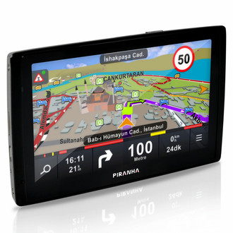 Piranha noTraffic X Type 5.0". Map coverage: Turkey. Display resolution: 480 x 272 pixels. Storage media type: Flash, Compatible memory cards: MMC, SD, Internal memory type: DDR2. Processor model: SiRFatlasV. Form factor: Handheld, Colour of product: Black