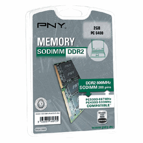 2GB Memory Module PNY Memory, 2 GB, SO DIMM 200-pin, DDR2, 800 MHz, PC2-6400, CL5.